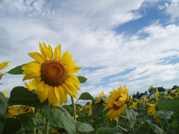 しばらくすると左手に一面黄色い世界が。エゾカンゾウかと一瞬思ったりしちゃったのだが、よく見ればなんとひまわり(☆☆)。しかもピークとばかりに超満開。入り口がよくわからずUターンして黄方面へ向かって行った。