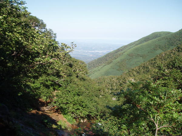 熊見峠からは急な坂道をひたすら下っていくので、この峠コースで斜里岳を目指す場合もやっぱり結構キツイかも。やっぱりオススメは登り:滝コース、下り:熊見岳コースかな。そして二股へと戻り、登りの滝ルートと合流です。
