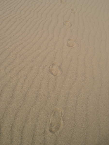 いつもならあのでかい丘に挑戦するのだけど、やっぱり足にチカラが入らなくてしんどいので、ミニサイズのほうを目指した。ひゃぁ・・・こっちって誰も来ないのか。足跡が全然ないよ。まっさらな砂。サンダルをほって裸足で歩いた。何て贅沢なひとり遊び!たまらん!